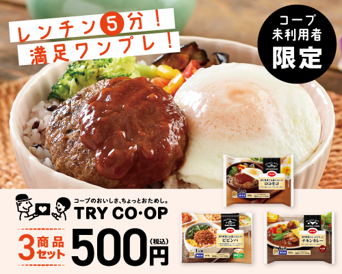 お試しセット・資料請求・利用申込の各リンクから、コープのあるくらしを手軽にスタートできます。