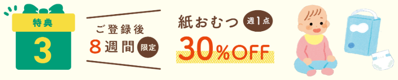 新規特典③ベビー紙おむつ30%OFF