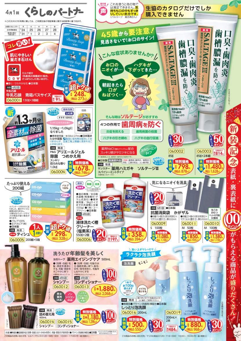 家庭用品や日用品、雑貨品、化粧品などのカタログです。毎日に暮らしに欠かせない消耗品や、「意外と便利!」な商品など生活に役立つ商品多数。CDやガーデニング、ペット用品も掲載しています。