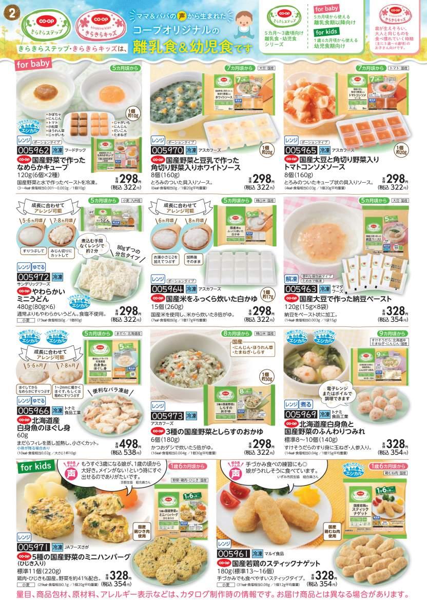 乳児の離乳食、食物アレルギーに配慮した食品や、紙おむつなどベビー用品を取り扱っています。6カ月に1回発行している季刊号は毎週注文ができます。食べてSmileにも3週目でご案内しています。