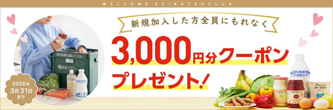 WEBで加入申込をするともれなく3000円分のクーポンプレゼント!さらに組合員のおすすめミールキット【鶏肉と国産揚げ茄子のうま煮(冷凍)】もプレゼント!